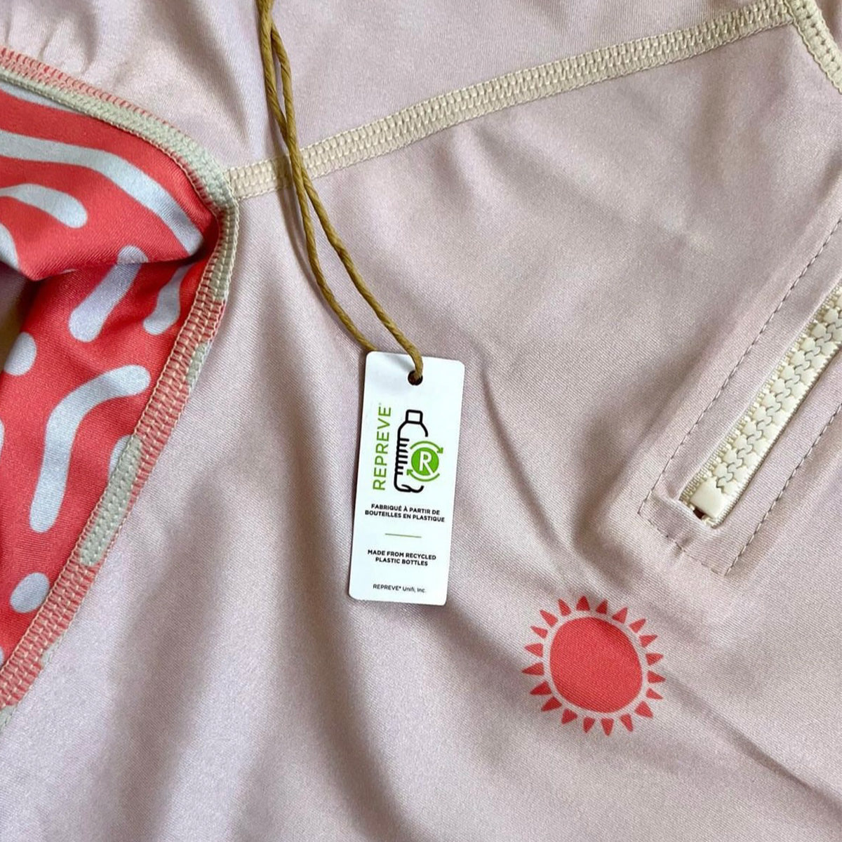 REPREVE® Polyester is sourced from recycled plastic bottles, effectively diverting plastic waste from landfills and oceans. Our current swimwear collection is crafted using 90% REPREVE® Polyester and 10% spandex.